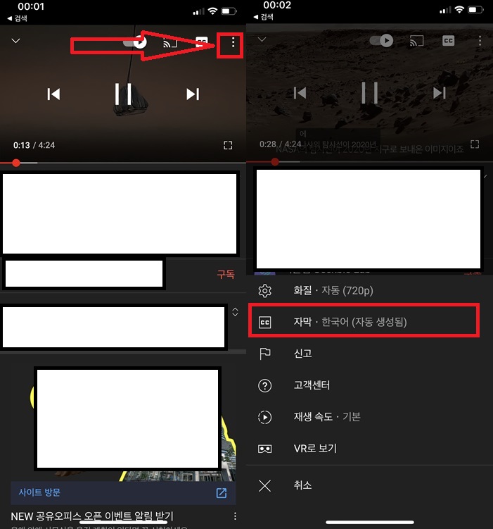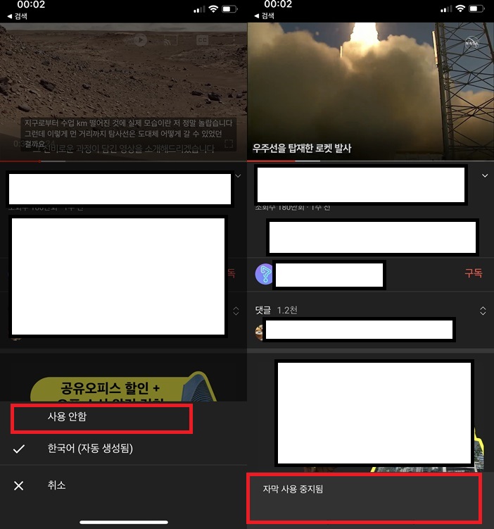 2. 모바일 어플에서 유튜브 자막 없애기