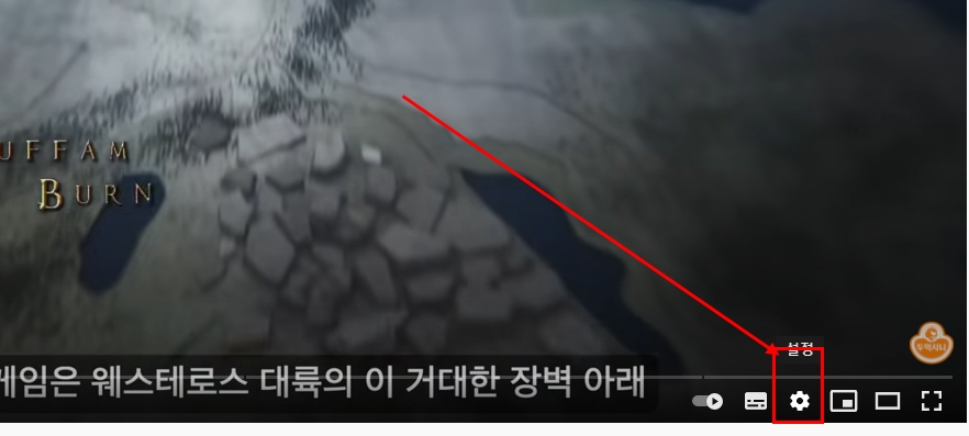 2) 톱니바퀴 모양의 설정 버튼을 클릭을 하게 되면 자막(1) 부문에서 현재 사용되어 있는 자막을 살펴볼수가 있고 자동자막 등 지원되는 자막이 보여지게 됩니다.▼