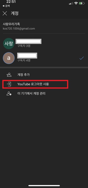 모바일 유튜브 로그아웃 방법 : 아이폰