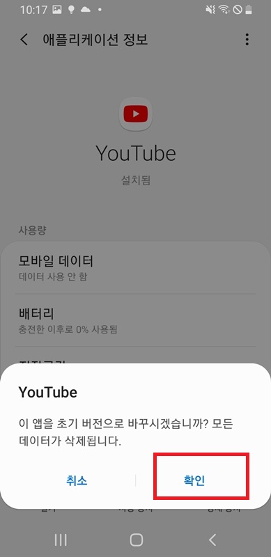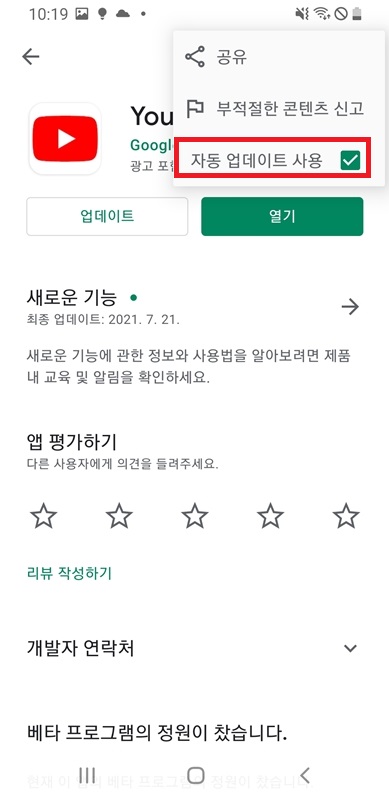 갤럭시 s9에서 진행을 하였으며 안드로이드 버전은 10, 유튜브 앱 버전(2021.7.21)은 최신입니다.