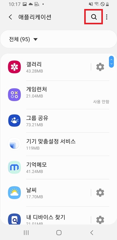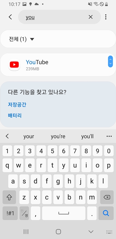 1. [설정]앱을 실행후 [어플리케이션] - [Youtube] 앱 설정으로 이동합니다. 어플리케이션이 많아서 찾기가 힘들다면 검색 아이콘을 이용해서 "Youtube"로 검색하면 됩니다.